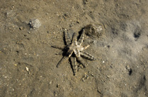 棘刺具有粗細兩種,粗的較長,末端截平,顏色為白色或具有黑白相間的環紋;細的較短,末端尖銳而有毒,顏色為紅棕色。肛乳突底色為橙色,具有藍白相間的斑點,十分美麗而醒目。體殼直徑約8~10公分,連刺棘可達30公分。管足孔每3對排列成一弧狀,各步帶有2行大疣和2~3行排列不規則的中疣。步帶窄而間步帶寬,赤道部各間步帶板上有大疣4~6個,排列成規則的橫行和縱行,但橫行是斜的。反口面間步帶的大棘中空且脆,容易折斷;口面間步帶的大棘扁平,末端鈍。