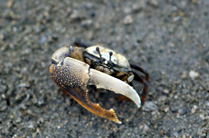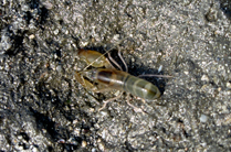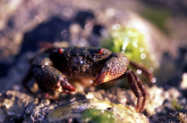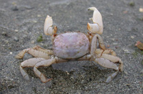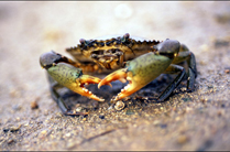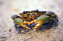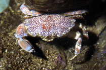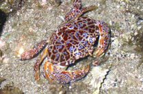 生態描述:俗稱石蟳仔,主要棲息在具礁岩沙質地的潮間帶至水深5m以淺的珊瑚礁石或沙泥質地也常可發現其蹤跡,因常以螯足將螺貝類夾碎而食,其螯腳指節前端常有斷裂的現象,廣泛分布在澎湖週邊各海域及潮間帶。 |