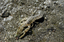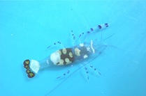 生態習性:俗稱石蝦,是釣獲石斑魚或青嘴龍占的最佳釣餌之ㄧ,在潮間帶下海釣魚的漁民,會先捕捉一些槍蝦作為釣餌。在潮間帶所捕獲的體長約1~4cm,屬淺水性的小型蝦類,在小岩塊或石珊瑚下縫隙中築穴成對而居。廣泛分布在澎湖各潮間帶沙泥質的小岩塊或石珊瑚下。 |