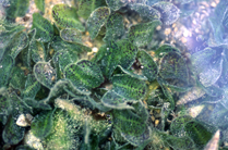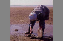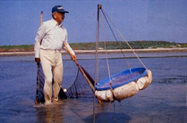 漁民在採捕短脊槍蝦以踩踏方式將蝦洞壓榻使槍蝦逃逸後,再以手抄曳網捕獲。大量的採捕槍蝦,以致讓鎮海灣的族群因過漁而出現資源枯竭現象;另外在海草草澤的棲地以踏採或以挖掘方式採捕槍蝦,可能也是加速鎮海灣海草範圍持續萎縮的原因之ㄧ。 |